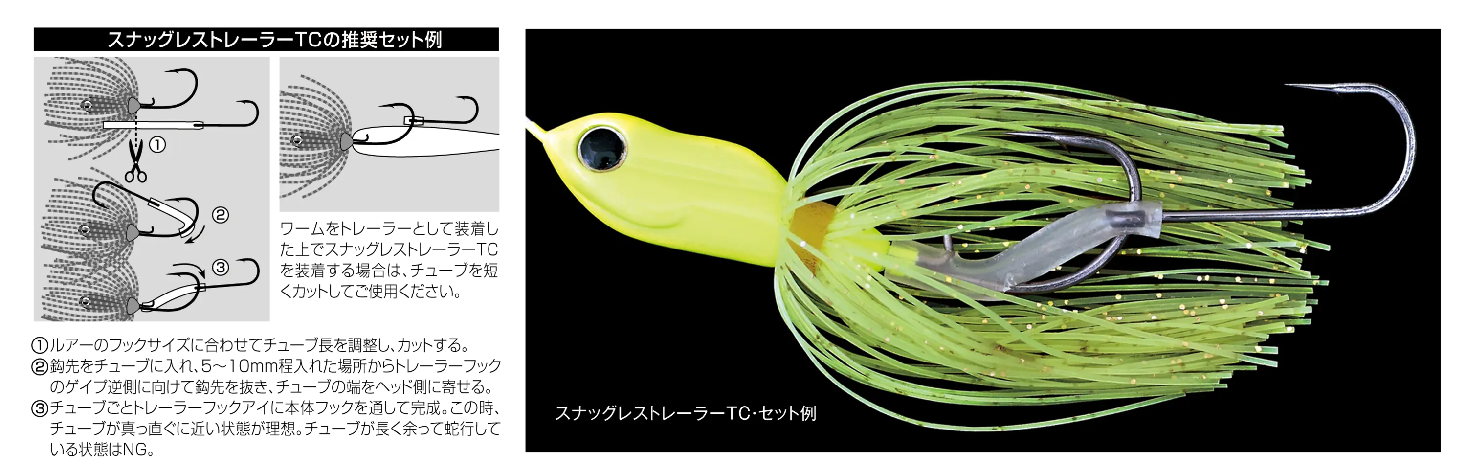 ルアーフックにチューブと一緒に通します。